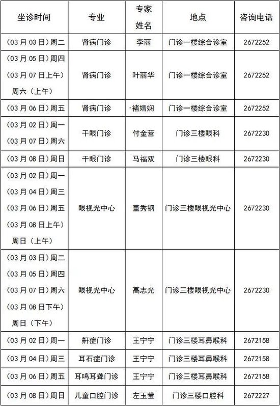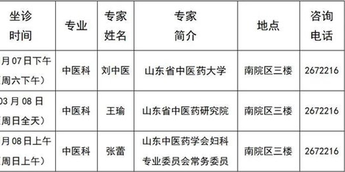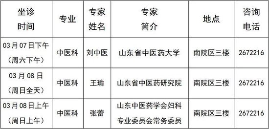 (2026年03月08日 周日全天坐诊 地点:南院区三楼国医堂)