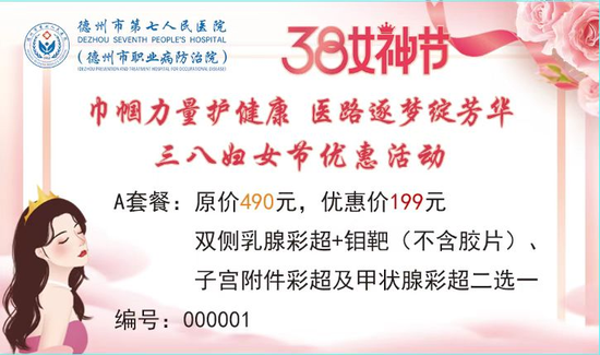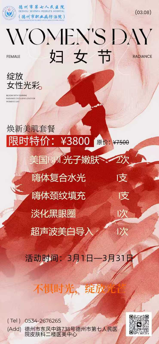 关注为深入贯彻以人民健康为中心的服务理念,在第116个“三八”国际妇女节来临之际,进一步关爱广大女性身心健康,彰显医院人文关怀与公益担当,德州市第七人民医院特开展2026年“三八”女神节健康关爱系列优惠活动。