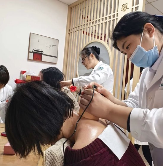 场设置了多个服务区域,专家团队为山东高速德州发展有限公司的员工们提供了面对面的健康咨询。中医特色技术体验区成为亮点,备受职工青睐,来自医院的中医专家运用扶阳罐、鍉圆针刮痧等特色疗法,为体验者缓解肩颈疲劳、调理身体状态,其独特的操作手法与舒适的感受赢得了阵阵好评。同时,皮肤科医生利用专业设备为员工进行皮肤检测,并根据检测结果提供个性化的护肤建议;康美中心与母婴健康管理中心的专家也针对不同需求提供了专业指导。此外,专家团队还耐心细致地为公司员工解读了各自的体检报告,针对报告中出现的异常指标给予详细的解答和科学的健康管理建议,帮助大家更好地了解自身健康状况,做到疾病早发现、早预防、早治疗。
