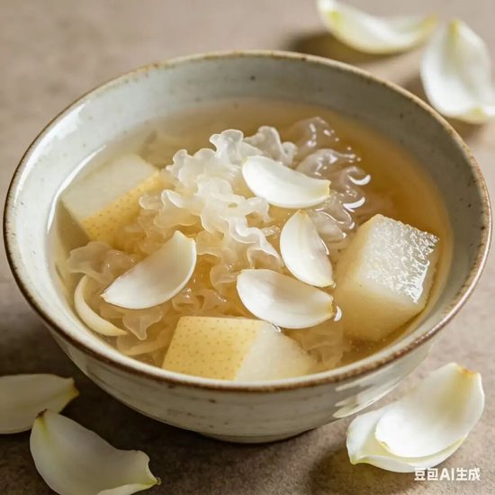 2. 燥邪/风热侵袭(咽干、咳嗽):多吃滋阴润燥、清热生津之物,如梨、银耳、百合、冬瓜;用金银花、菊花、麦冬泡水代茶饮,缓解咽干;避免辛辣、干燥食物,减少刺激。