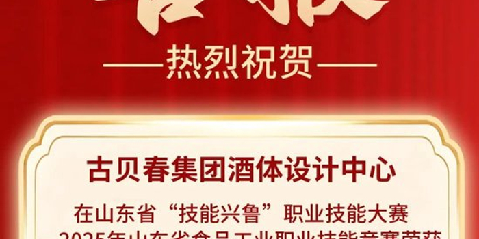 关注近日,由山东省人力资源和社会保障厅批准、山东省食品工业协会主办的“山东省‘技能兴鲁’职业技能大赛——2025年山东省食品工业职业技能竞赛”圆满结束。古贝春集团选派的科研团队从全省48家骨干企业132名参赛选手中脱颖而出,在“白酒酒体设计师”“白酒品酒师”项目中斩获多项荣誉,企业被授予“优秀组织奖”和“突出贡献奖”称号。