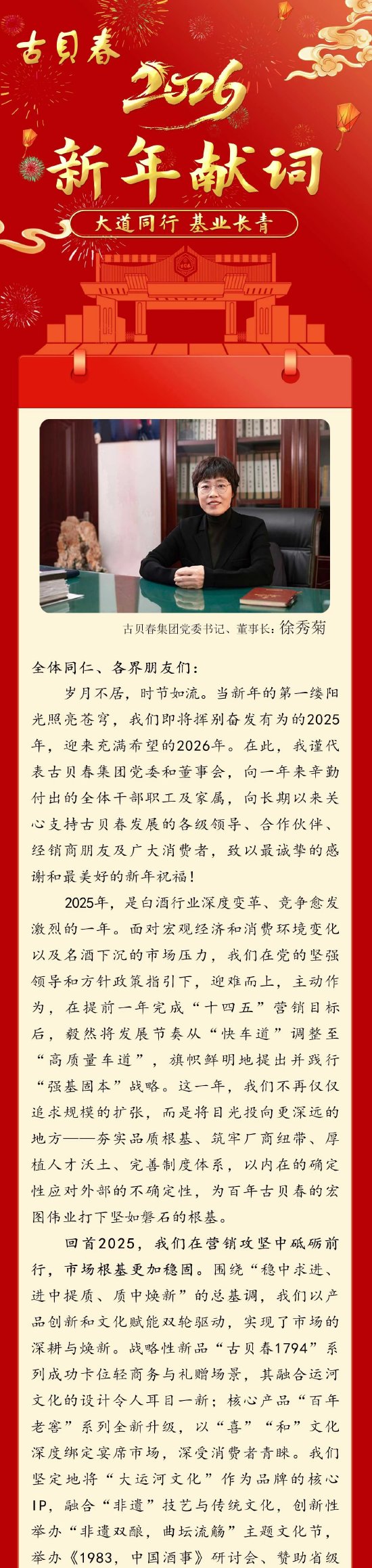 古贝春集团有限公司董事长徐秀菊二〇二六年新年献词