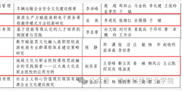 关注近日,2025年度山东省职工与职业教育重点课题结项结果正式公布,德州科技职业学院教师在此次评选中表现突出,喜获佳绩,共有两项课题获奖,其中二等奖1项、三等奖1项。