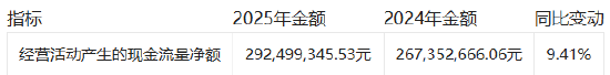2025年公司现金流呈现分化特征,经营活动现金流逆势增长,而投资、筹资活动现金流未披露具体数据,现金流结构的完整性有待补充。