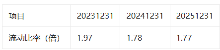• 流动比率持续下降。近三期年报,流动比率分别为1.97,1.78,1.77,短期偿债能力趋弱。