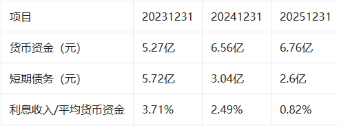 • 利息收入/货币资金比值小于1.5%。报告期内,货币资金为6.8亿元,短期债务为2.6亿元,公司利息收入/货币资金平均比值为0.818%,低于1.5%。