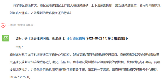 关注济宁市区逐渐扩大,市区到周边县区工作的人员越来越多,上下班道路拥挤,路况越来越复杂。请问有再继续规划有轨交通吗,之前规划的云轨现在还执行吗?
