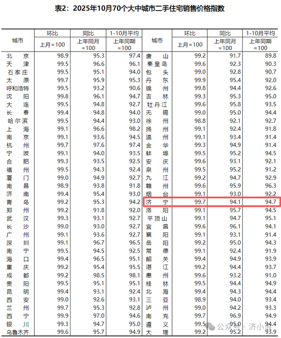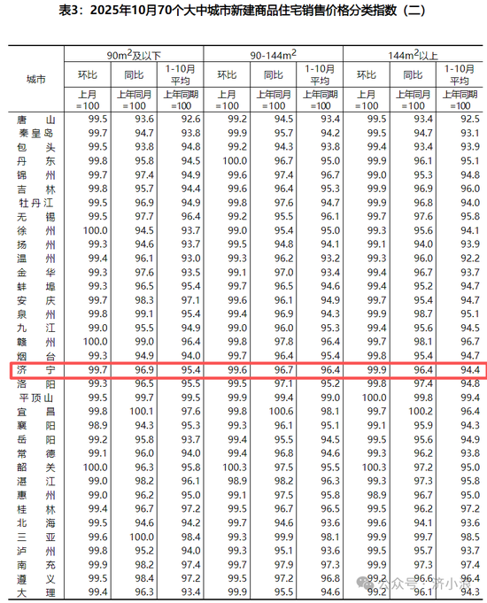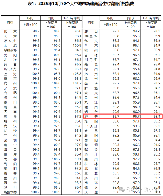 新浪山东济宁频道小编相关渠道获悉:今早9点30分,国家统计局发布了2025年10月份70个大中城市商品住宅销售价格变动情况统计数据。2025年10月份济宁市新建商品住宅销售价格环比下降0.3个百分点。