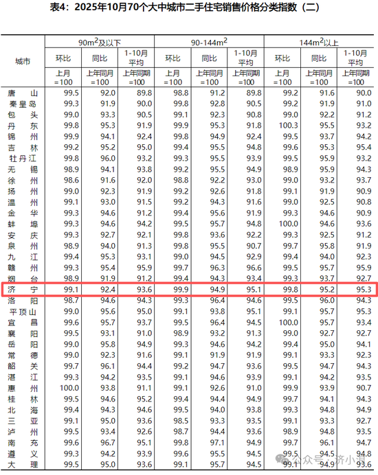 10月份二手住宅销售价格分类指数方面:济宁市90平米及以下户型价格较上月环比降0.9%,90平米-144平米户型价格较上月降0.1%,144平米以上户型价格较上月降0.2%。