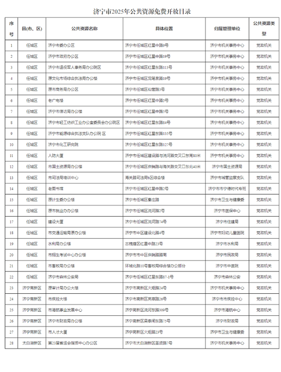 共计28处!《济宁市2025年公共资源免费开放目录》公布
