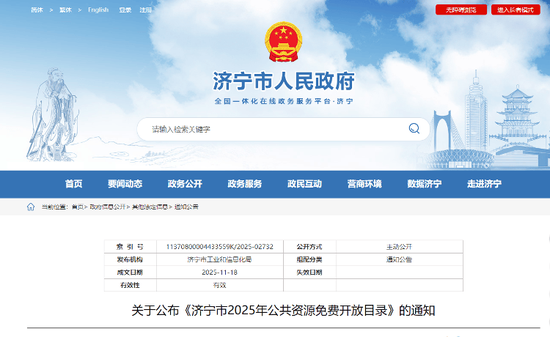济宁市2025年公共资源免费开放目录