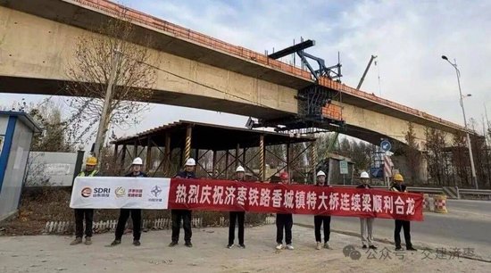 提速!济枣铁路济宁段一特大桥跨规划路连续梁顺利合龙