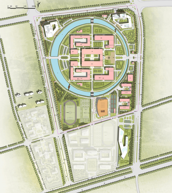 调整内容:(1)建筑密度由18.04%调整为17.95%,容积率由0.812调整为0.819,总绿化覆盖率(含水面)由42.56%调整为43.04%,基底面积由77723平方米调整为77373.53平方米,总建筑面积由380740.23平方米调整为379885.23平方米。(2)体育馆+游泳馆更名为文体馆,地上建筑面积由16000平方米调整为15145平方米,建筑层数由2层调整为4层,建筑高度由22.45米调整为22.80米。(3)优化文体馆东侧道路,重新布置机动车停车位位置,设置于文体馆北侧和东侧。
