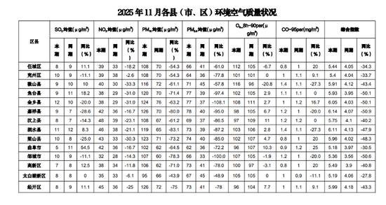 综合指数5.3!2025年11月份济宁市环境空气质量状况公布