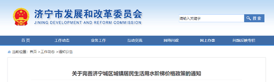 关于完善济宁城区城镇居民生活用水阶梯价格政策的通知