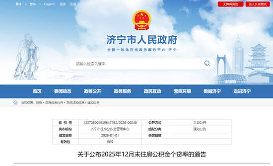 截至2025年12月末 济宁市住房公积金个贷率66.11%