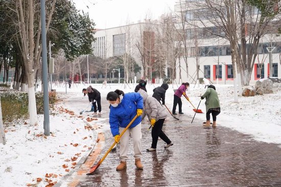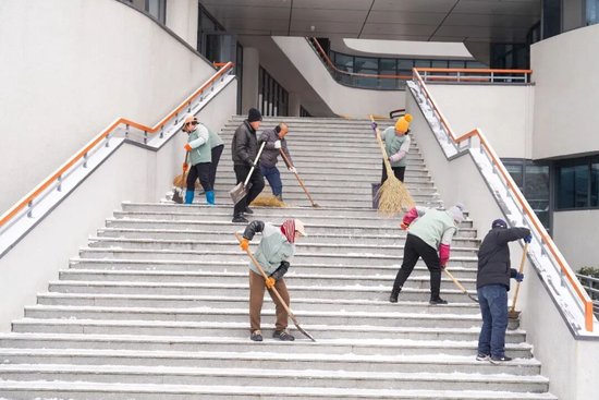 铁锹破冰如剑 扫帚清道如风