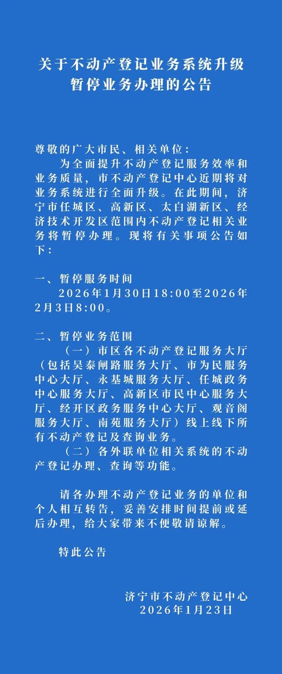 暂停业务办理!济宁市不动产登记中心发布最新公告