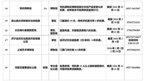 19家景区优惠