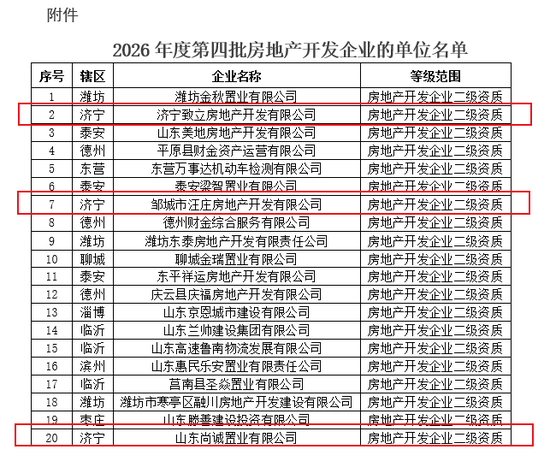 济宁3家!2026年度第四批房地产开发企业资质名单发布