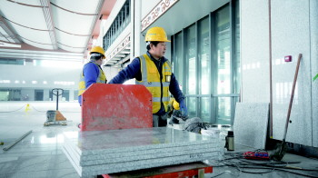 “目前主体站房的站场部分包括雨棚、天桥、地道等都已完成建设。站房内装完成95%,外装完成90%,还有剩下的一些室外铺装以及水电安装、外幕墙收口等工作。”中铁十局梁山站总工刘鹏介绍,春节期间,项目统筹调配管理、技术及施工力量,组织100余名作业人员坚守一线,实行“两班倒、三班倒”昼夜轮班施工制度,确保工序衔接零间隙、工程推进不间断。