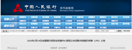 连续九个月保持不变,2026年2月24日贷款市场报价利率(LPR)公布