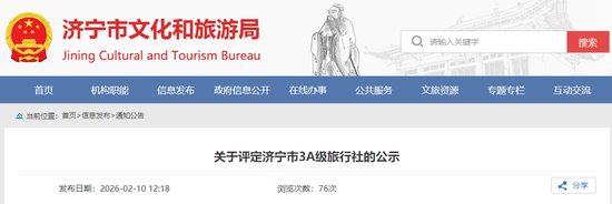 2月24日,从济宁市文化和旅游局了解到,根据《山东省旅行社等级划分与评定标准(2025年版)》相关规定,该局完成3A级旅行社材料审核、现场检查等程序,确定济宁市3A级旅行社候选名单,现予以公示。