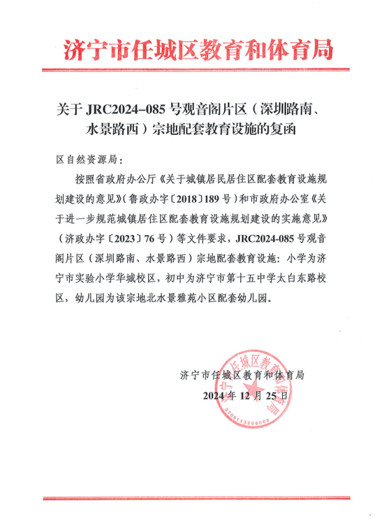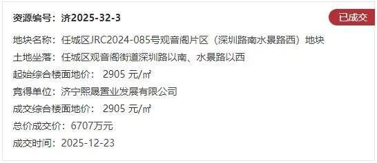 地块三:任城区JRC2024-085号观音阁片区(深圳路南水景路西)地块[济宁熙晟置业发展有限公司竞得]