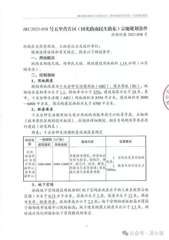 宗地名:任城区JRC2025-058号五里营片区(国光路南民生路东)地块