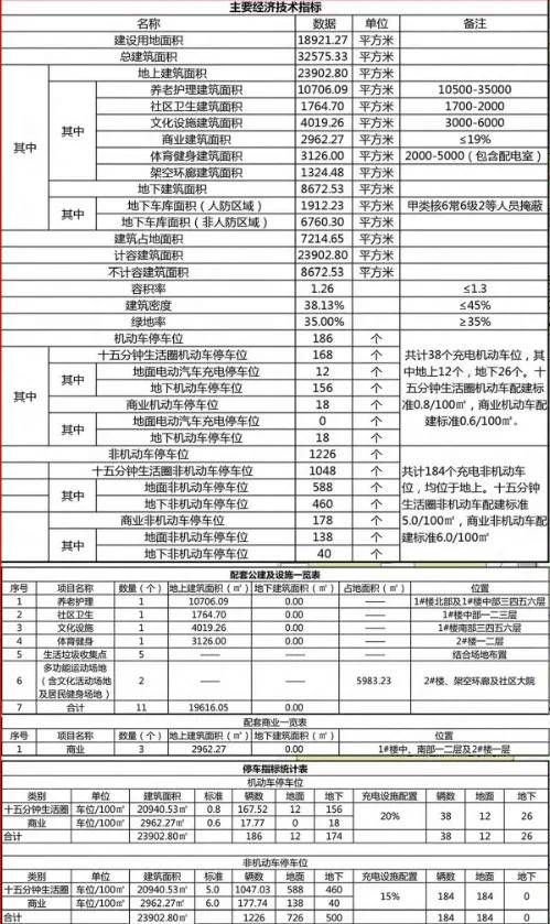 用地性质为公共管理与公共服务设施用地兼容商业用地,规划建设用地面积为18921㎡(约28亩),总建筑面积32575.33㎡,其中地上新建建筑面积23902.80㎡,地下建筑面积8672.53㎡;容积率1.26,建筑密度38.13%,绿地率35%,机动车停车位187个,其中:地上12个,地下175个;非机动车停车位1226个,其中:地上726个,地下500个。