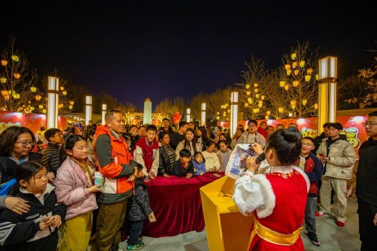 与此同时,济宁方特超级喜“市”每逢周末热闹开市。游客漫步市集,可在万福墙前写下春日祈愿,或与NPC来一场趣味互动,感受传统与潮流交融的烟火气。此外,备受游客喜爱的“熊熊币”互动玩法也将持续上线并贯穿全年活动,游客参与各类趣味游戏,完成挑战即可赢取“熊熊币”,兑换精美礼品;还可凭“熊熊币”参与“喜市拍卖会”,举牌竞拍心仪的文创好物或限定周边,让游园之旅更添一份独特惊喜。