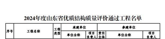 2024年度山东省优质结构质量评价通过工程名单