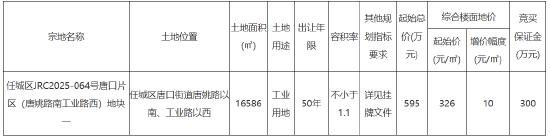 任城区JRC2025-064号唐口片区(唐姚路南工业路西)地块一:2026年4月7日9时00分至2026年4月17日9时00分;