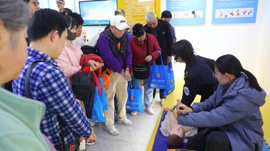 活动尾声,科普大厅内暖意融融。工作人员围绕心肺复苏、自动体外除颤器(AED)使用等核心急救技能,进行了细致讲解和标准示范,手把手指导听障人士掌握按压部位、力度、频率等关键要点。在模拟人面前,大家踊跃上台实操演练,反复打磨施救手法,在一次次模拟情境操作中,巩固急救知识、熟练急救技能,切实增强了应对突发状况的实操能力。
