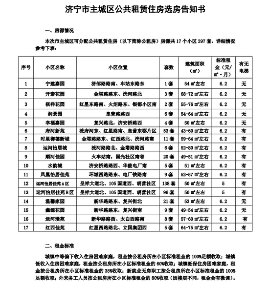 涉及17个小区,共397套房源!济宁主城区最新公租房房源发布