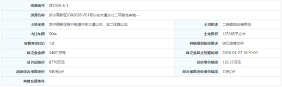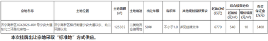济宁高新区JGX2026-001号宁安大道东北二环路北宗地一:2026年4月18日9时00分至2026年4月29日9时00分;