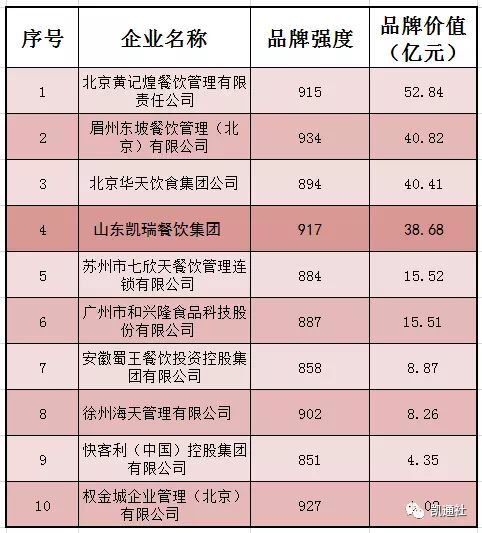 2016中国品牌价值榜出炉 山东凯瑞餐饮集团连续两年榜上有名