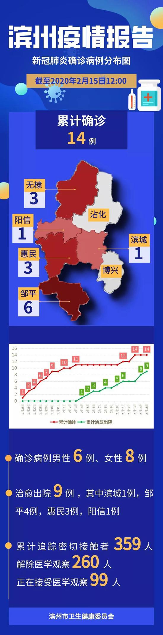 2020年2月15日0时-12时,滨州市无新增新冠肺炎确诊病例,治愈出院1例