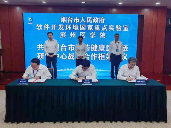 本次大会,滨医可谓收获颇丰。7月28日下午,2021医药创新与发展国际会议战略合作协议签署仪式上,滨州医学院、烟台市政府、国家重点实验室共同签署共建烟台市医药健康区块链研究中心战略合作框架协议;29日上午,2021医药创新与发展国际会议主题大会举行,烟台市医药健康区块链研究中心揭牌。