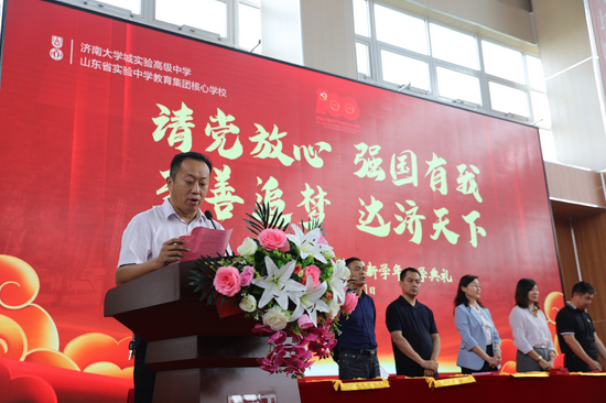 在庆祝中国共产党成立100周年大会上,共青团员和少先队员代表集体致献词。青春年少的面庞,郑重有力的誓言,彰显着新时代中国青年的志气、骨气、底气。学生代表曹宇澄、毕明磊、任静怡、许佳丽,重温献词,在实现中华民族伟大复兴的征程中奏响泉城至善学子“请党放心,强国有我”的时代强音。