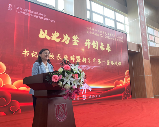 书记、校长校长郑玉香带来致辞暨“以史为鉴、开创未来”新学年第一堂思政课,以“九个必须”为课程脉络——必须坚持中国共产党坚强领导,必须团结带领中国人民不断为美好生活而奋斗,必须继续推进马克思主义中国化,必须坚持和发展中国特色社会主义,必须加快国防和军队现代化,必须不断推动构建人类命运共同体,必须进行具有许多新的历史特点的伟大斗争,必须加强中华儿女大团结,必须不断推进党的建设新的伟大工程,讲明了“历史”的深刻内涵和启示——“历史是最好的教科书,也是最好的清醒剂”“历史是一个民族、一个国家形成、发展及其盛衰兴亡的真实记录”“在历史进程中,做出自己的努力,做出自己的历史贡献”。勉励师生,以史为鉴,开创未来,锤炼鲜明红色品格,引领昂扬的至善教育,薪火相继,奋楫争先,勇开新篇。祈愿智慧生态的至善乐园永远龙腾深渊,凤舞九天,气象万千。