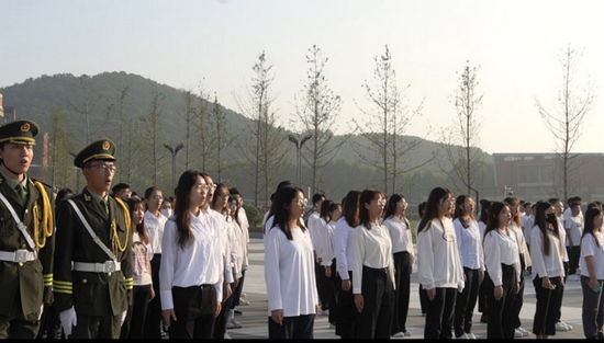 升国旗仪式之后,由机械与汽车工程学院60名“青马学员”组成的合唱队共同高声齐唱“歌唱祖国”,洪亮的歌声就如同同学们一颗颗炙热的心,让祖国华诞72周年的喜庆,在每一个师生心中激荡。