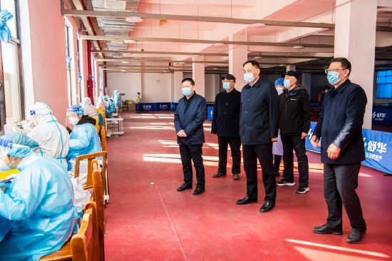 在核酸检测采样现场,学校领导详细了解有关流程和力量配备及条件保障情况,亲切看望连日来昼夜奋战在核酸检测采样一线的校医院医护人员以及广大学工人员,感谢他们的辛勤付出与无私奉献,并勉励他们再接再厉,共同守护好学校师生的健康平安。学校领导要求要进一步优化流程并充实力量,在严格遵守有关规范的基础上,想尽一切办法提高采样能力和效率,科学合理规范地组织好师生采样,尽快实现应检尽检。
