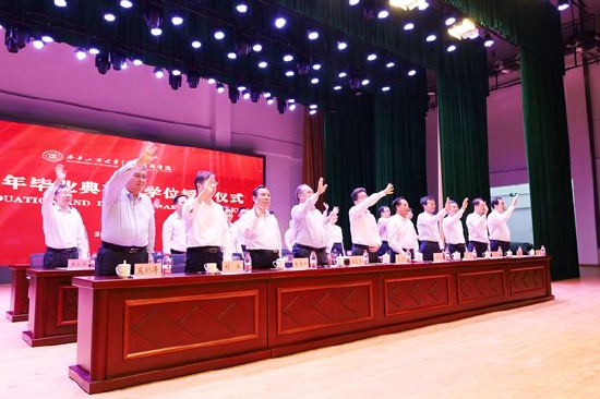 毕业典礼上,副校(院)长刘玉宣读优秀毕业生表彰决定,副校(院)长曹茂永宣读授予学位决定,主席台领导为优秀毕业生颁发证书,为硕士学位和学士学位获得者授予学位证书。