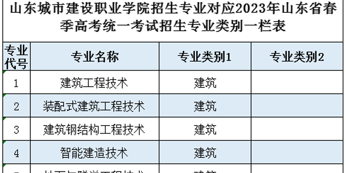 山东城市建设职业学院招生专业对应2023年山东省春季高考统一考试招生专业类别一栏表