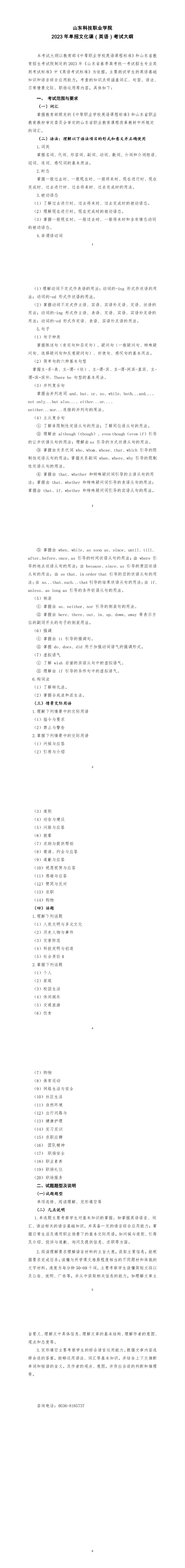 山东科技职业学院2023年学院单独招生文化课考试大纲
