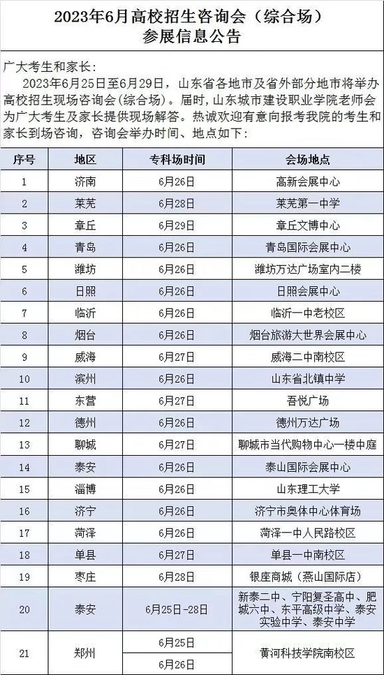 最新资讯 | 山东城市建设职业学院2023年6月高校招生咨询会(综合场)参展信息公告