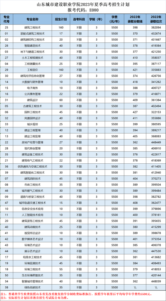 各专业具体招生计划全都有!山东城市建设职业学院2023年夏季高考招生计划公布