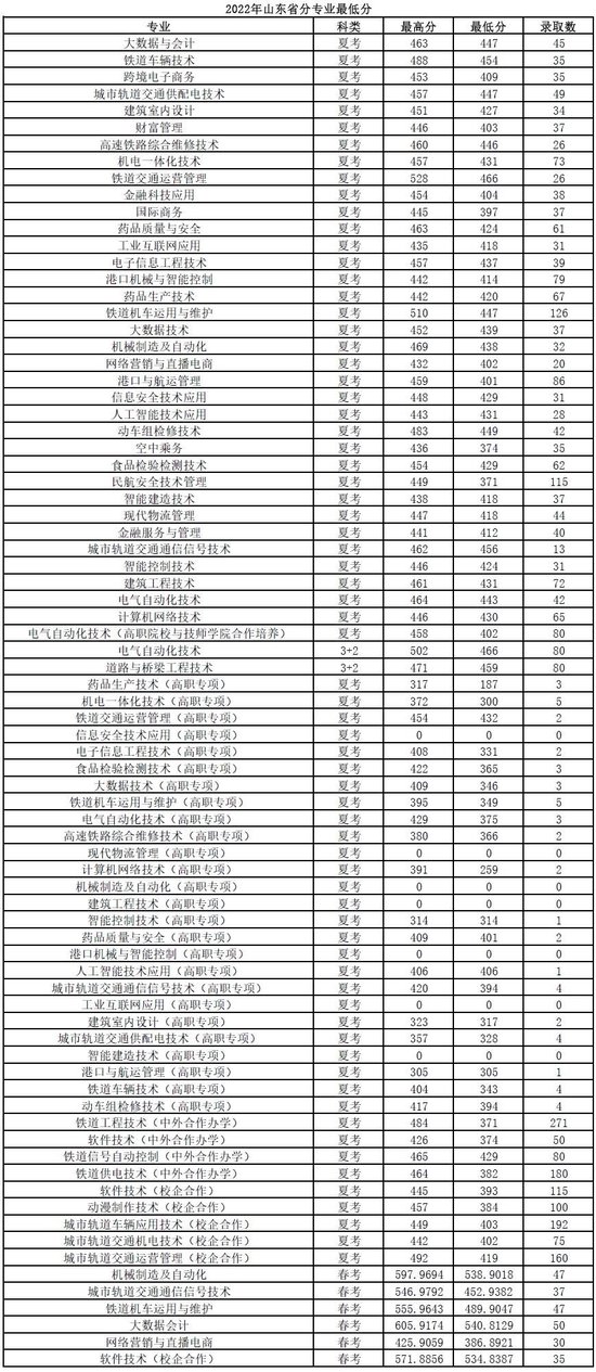 重要参考|山东职业学院2022年山东省及外省录取分数