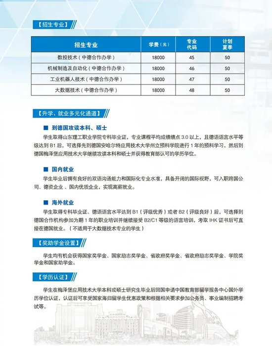 2024年山东理工职业学院专本硕连读专业(中德合作办学)招生简章